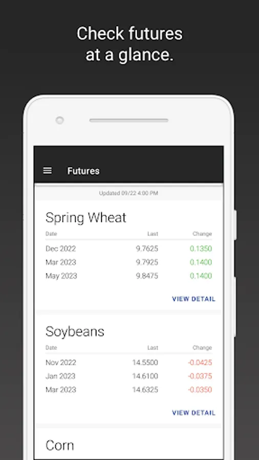 Futures: See Grains, Feed, Livestock, and Ethanol futures listed in order of your preference