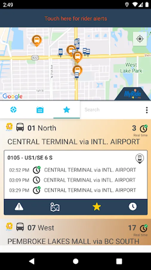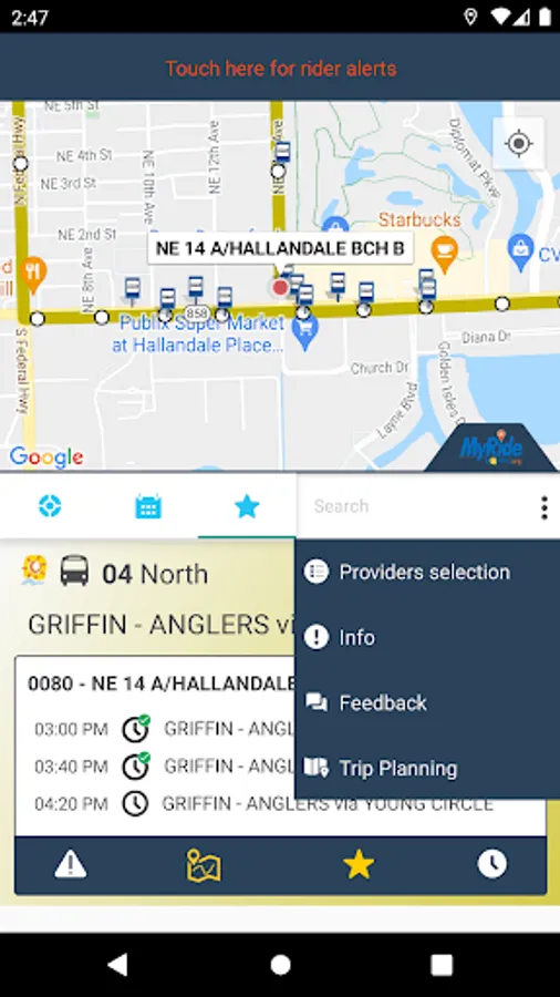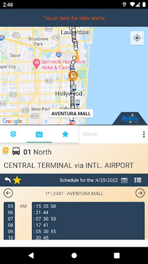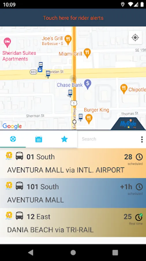 The MyRide Broward app is a real time information product for Broward County Transit customers, providing bus arrival information, bus location and route schedule information for all Broward County Transit bus routes.
