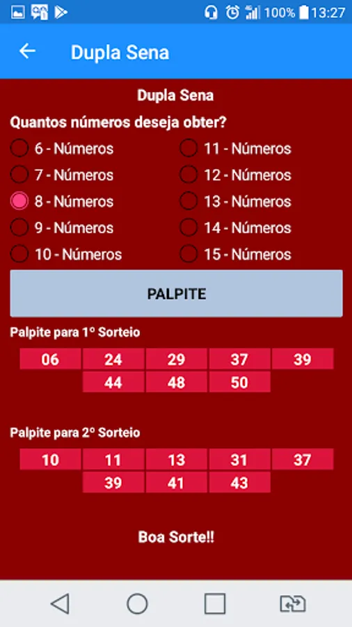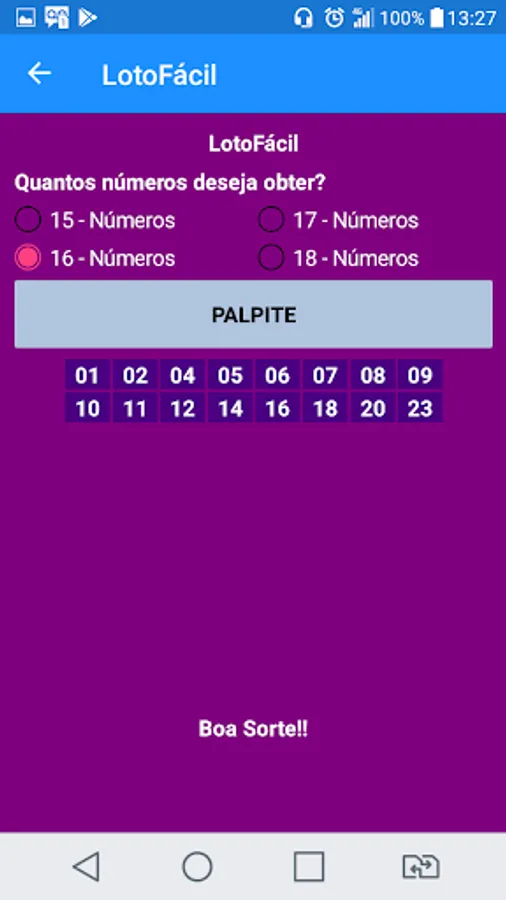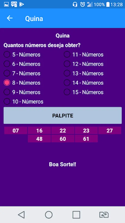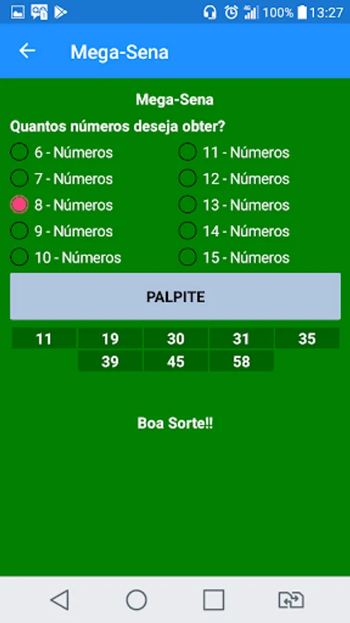 This application is just a generator of guesses for betting on lotteries and does not guarantee that the bettor will win every time he plays, it simply increases the chances of the bettor, since it has an algorithm to generate the guesses.
