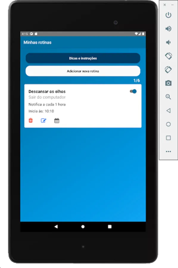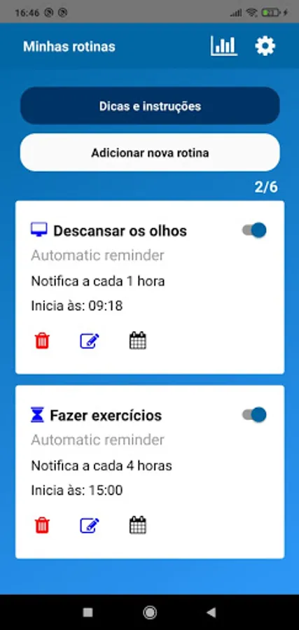 MyRoutine is an automatic reminder manager that notifies the user periodically aiming to help you organize your day.