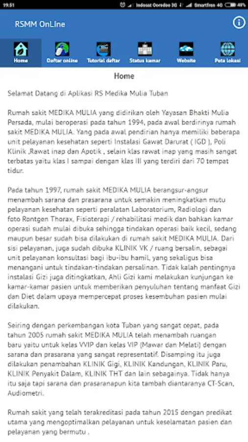 Registration application for Online Outpatient Hospital MEDIKA MULIA is a useful application for patients who already have No. RM at MEDIKA MULIA Hospital, to facilitate medical registration Outpatient online 24 hours.