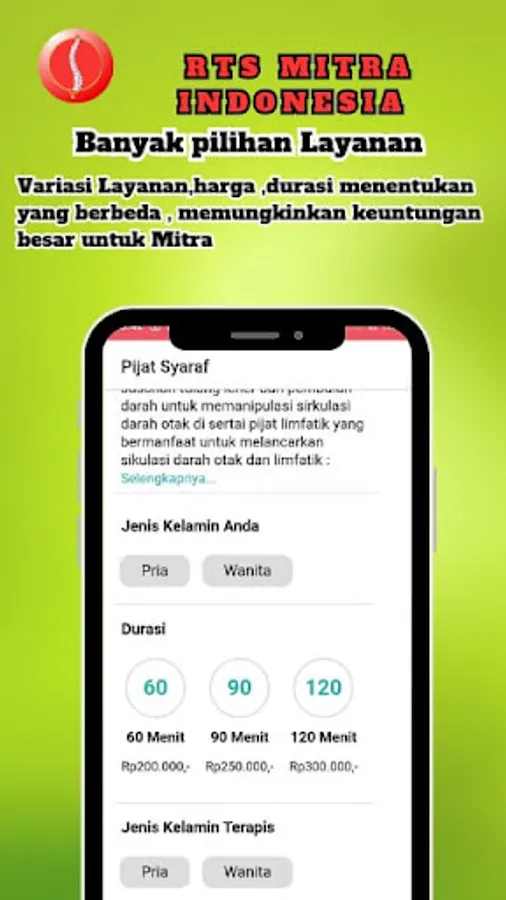 RTS Indonesia Bone and Joint Repositioning massage service application.