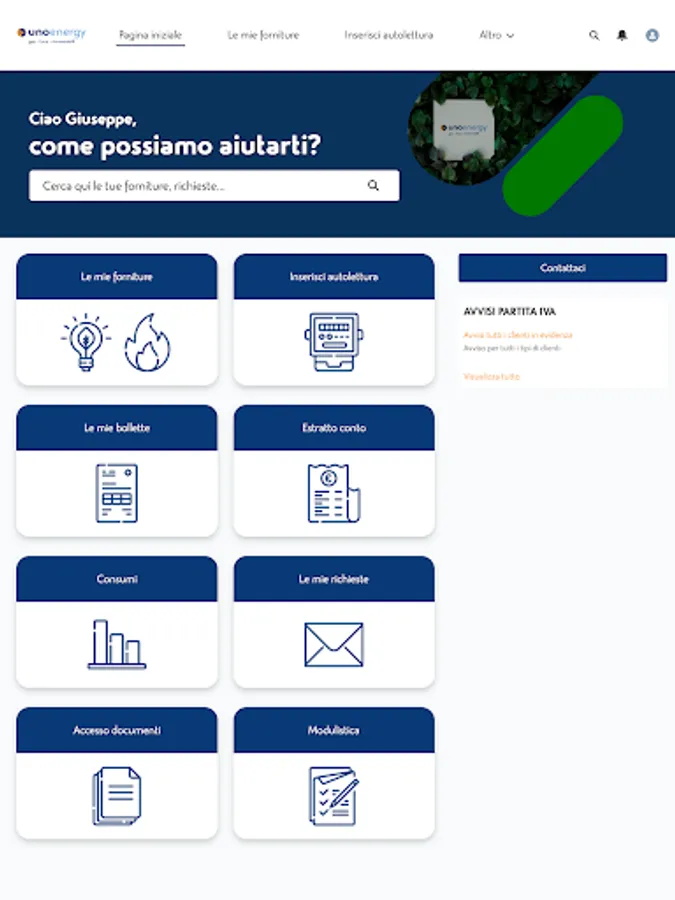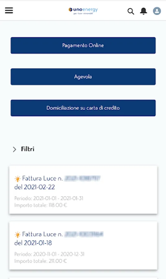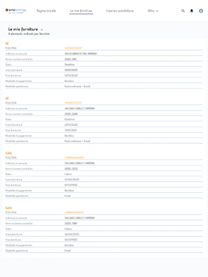 With the Unoenergy App you can: monitor your consumption, consult and pay the invoices issued, check the status of the payments, enter the self-reading, access your documents and forms, check the status of your requests.