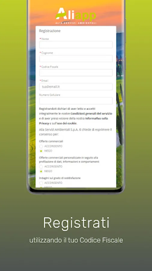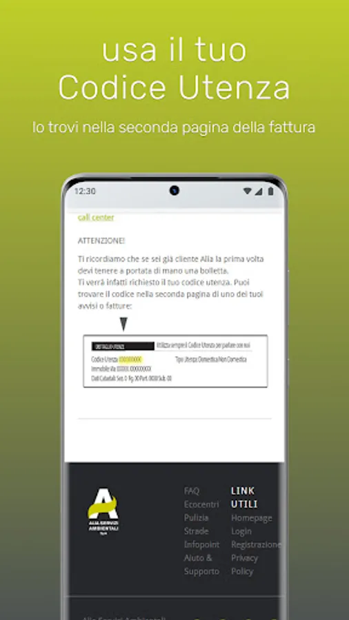 If you are already registered in the customer area on the www.aliaserviziambientali.it website, use the same credentials to access the app.