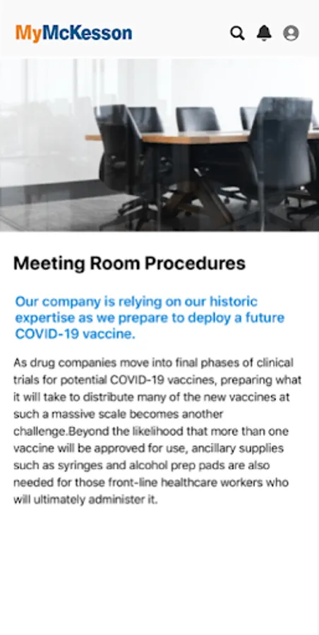 MyMcKesson is an app for McKesson employees to connect to anytime, anywhere to explore the resources and news you need most. MyMcKesson gives you easy access to HR and benefits information, updates from our leadership and news articles featuring your colleagues and the work we are all doing to make better care possible for patients around the globe.