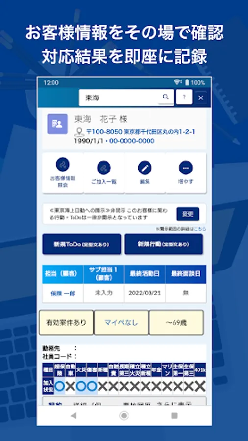 This is an application for mobile terminals of the agency system TNEXT provided by Tokio Marine & Nichido.