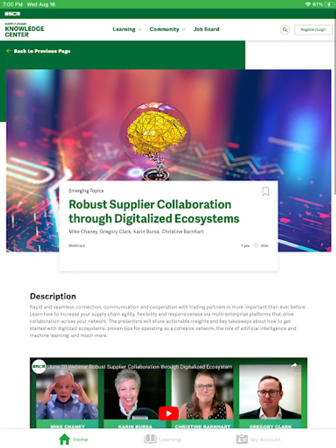 •On-demand webinars: Covering topics across the end-to-end supply chain, developed and led by industry experts.