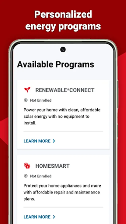 Quickly and easily enroll in clean, renewable energy programs. Get details and sign up for Xcel Energy billing programs like automatic payments or averaged monthly payments to make paying your bills even easier every month. Get piece of mind and protect your home appliances through HomeSmart. The My Xcel Energy mobile app provides access to all of the various programs that you may be eligible for.