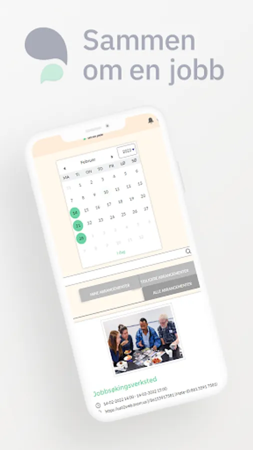 The Sammen om en jobb-app gives you access to everything you need to structure your mentor relationship, plan you meetings, find relevant events and meet the other participants.