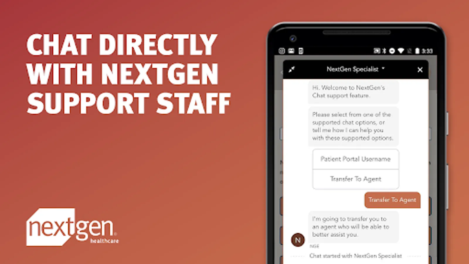 * Chat directly with NextGen Support staff