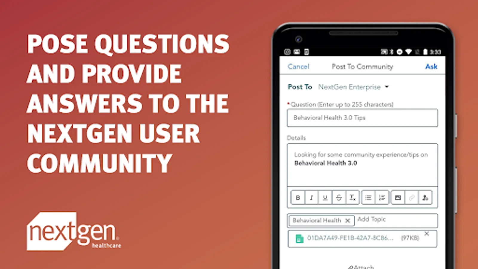 NextGen's new Mobile Success Community provides a streamlined, quick, and easy way for you to manage your NextGen support experience directly from your favorite mobile devices: