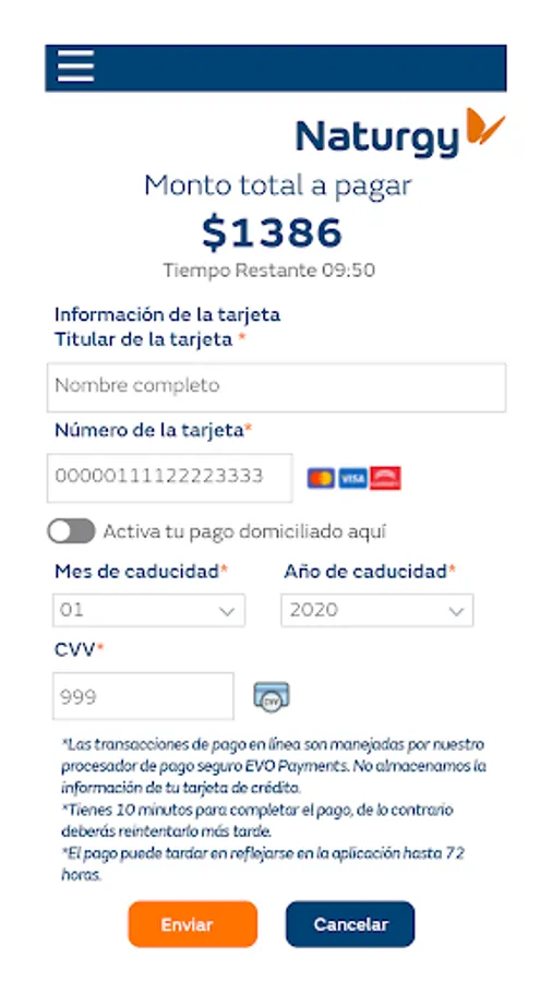- Pay your receipt with Visa and Mastercard cards, with the confidence and security that your transaction will always be protected.