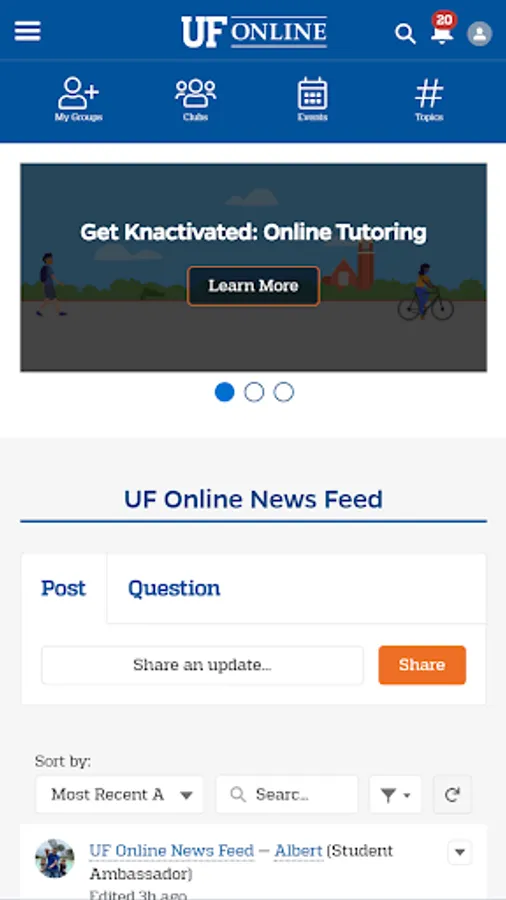 With the UF Online app, it’s never been easier to connect with your UF Online classmates. At any time, you’ll be able to easily post questions, start conversations, and engage with groups you follow in the Plaza. Students will also have easy mobile access to their courses in Canvas, to One.UF, and to GatorCloud Email from within the app. Customizable push notifications will help keep you in the know. You can tailor these settings, or choose to receive a daily or weekly digest. This app can be enjoyed by UF Online students, faculty, staff, and advisors