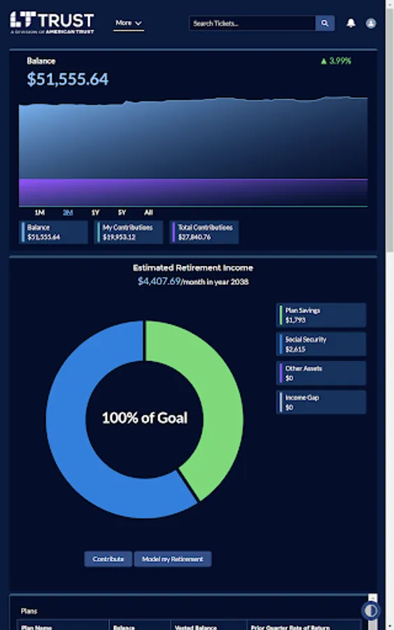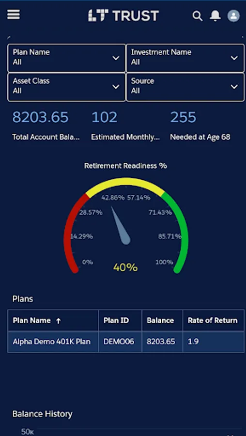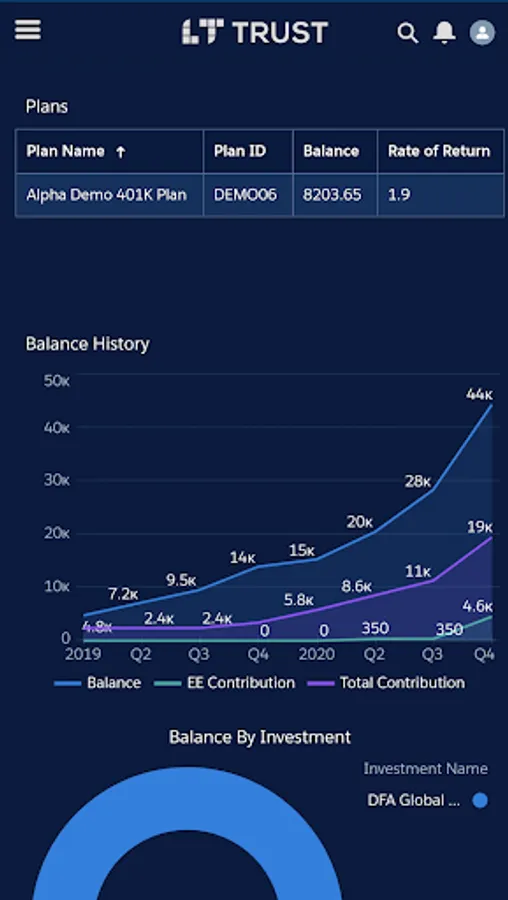 Whether you're on the go a little or a lot, the LT Trust Participant app is a great way to take charge of your financial future! Monitor account details, investment elections, and manage your retirement assets right from the palm of your hand!