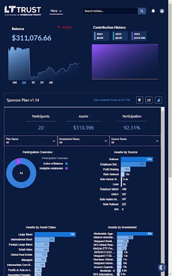 SponsorLens from LT Trust is a data visualization app that tailors analytics to your 401(k) plan.