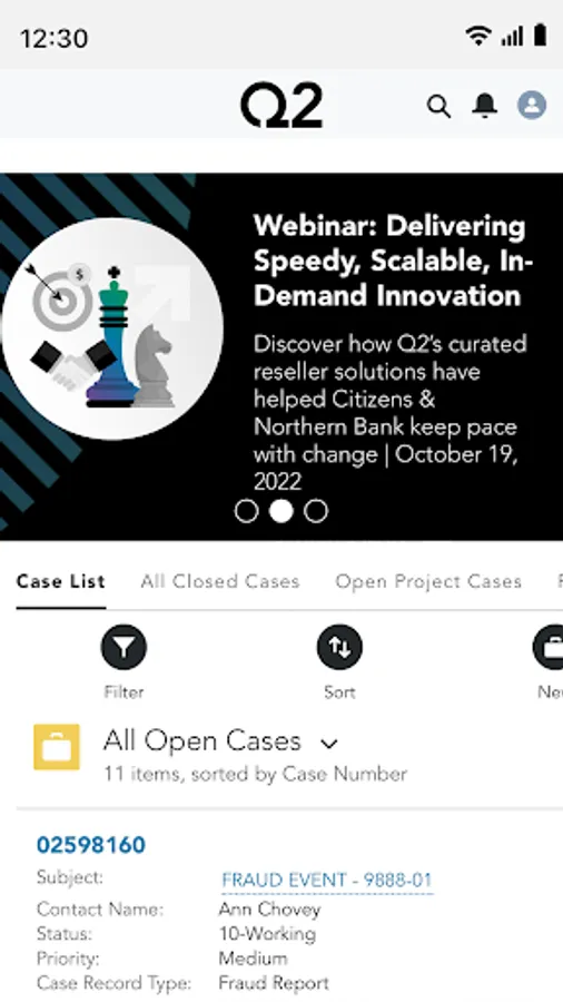Allows existing Q2 Customers to log into our portal for help, documentation, reviewing cases, and collaboration. Mobile app allows a persistent login and notifications.