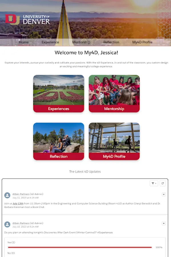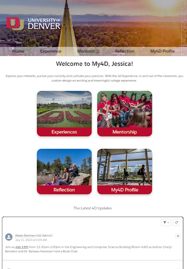 With the My4D app, you have everything you need to design your University of Denver (DU) 4D Experience.