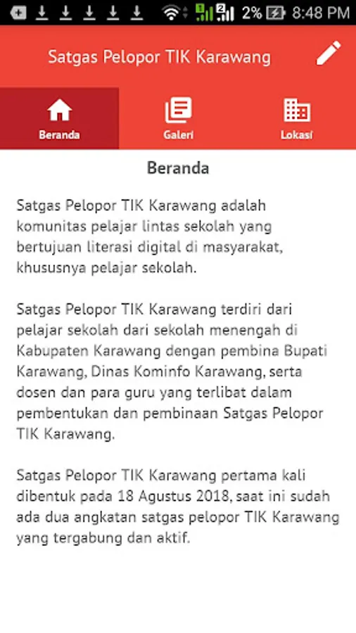 Melalui aplikasi ini, informasi dan komunikasi dari Satgas Pelopor TIK Karawang akan disampaikan secara rutin.