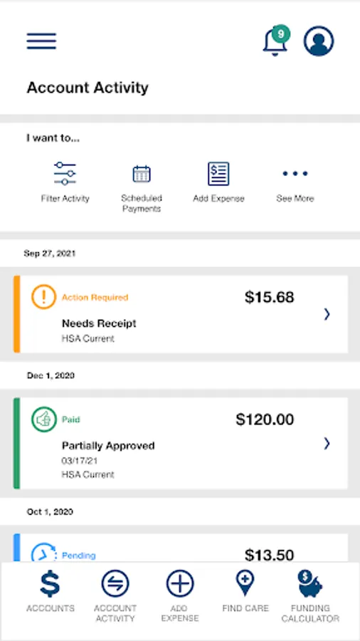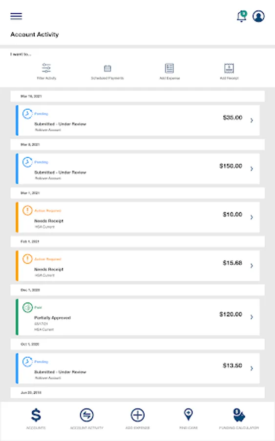 • Benefit Health Account balances and details