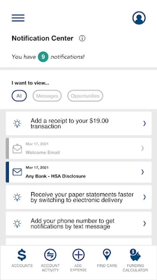 • Ability to fund HSA account from checking/savings account