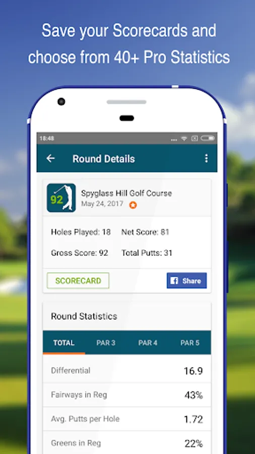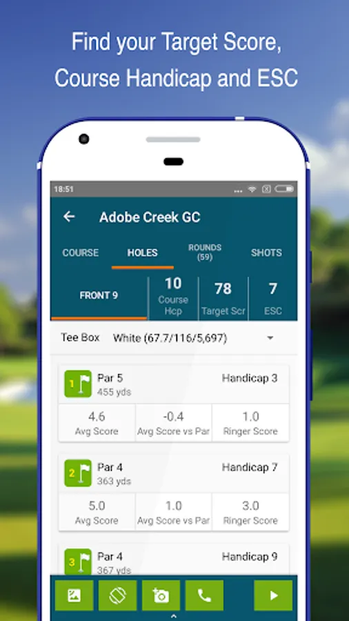 * 16,000+ plus course database with slope and rating information as well as full course scorecards for easy hole by hole entry