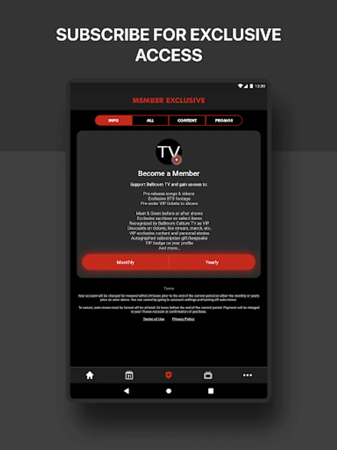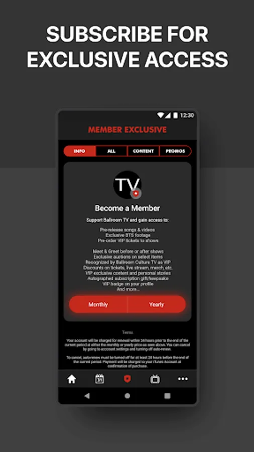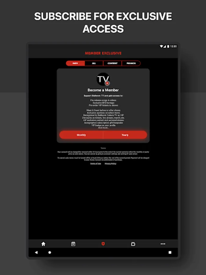Ballroom Culture TV Official App is free. Subscriber content is available for a low monthly fee.