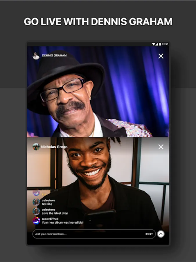 Get exclusive access to Dennis Graham’s world as an artist, and entertainer every step of the way with a mixture of free and premium paid content offers and experiences only available in his Official App.
