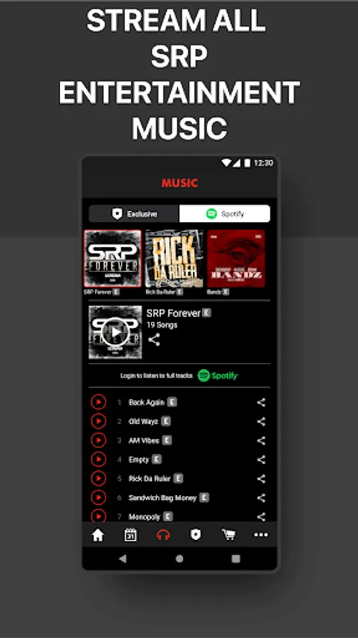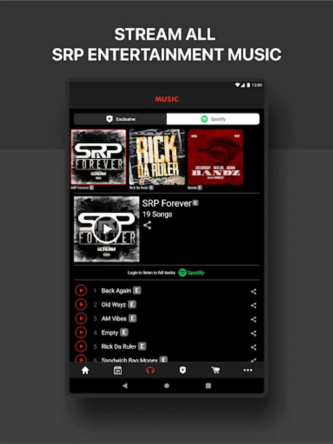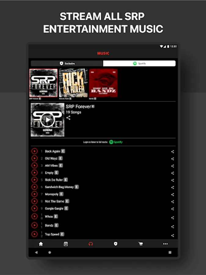 Get exclusive access to SRP Entertainment’s world as a Label, and Entertainment company every step of the way with a mixture of free and premium paid content offers and experiences only available in the Official App.