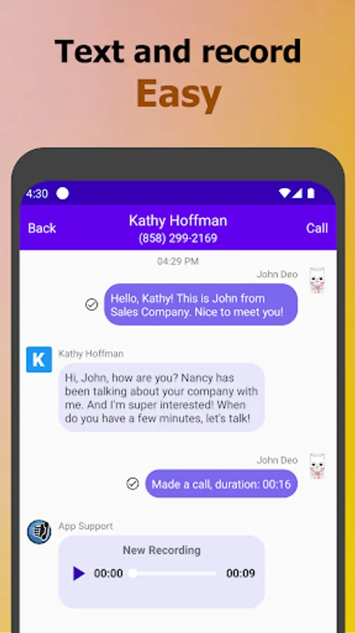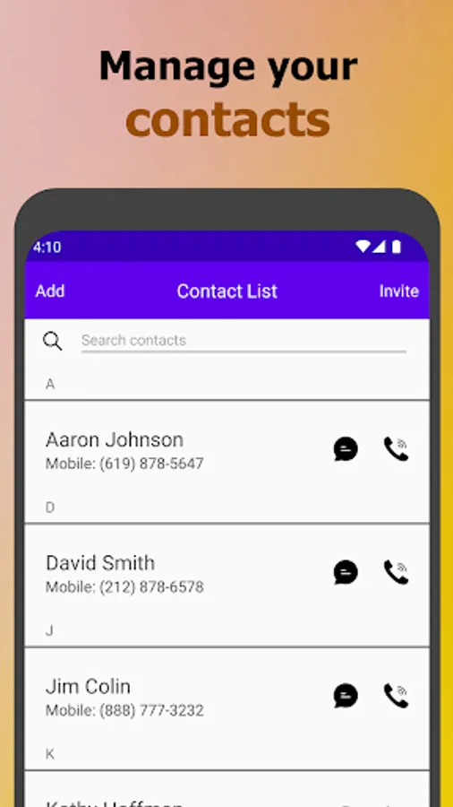 You can text your contacts. And you can receive messages from all over the world. It's also easy to make and receive calls just like your mobile phone. We support mobile networks, WIFI, and VoIP with the best quality.