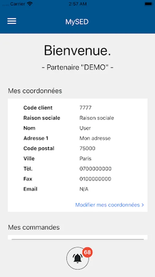 The MySED application is an application intended for professional partners of SED SAS. Access to this application is restricted to professionals identified by SED SAS.
