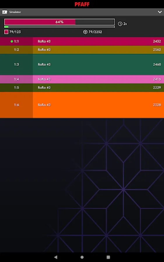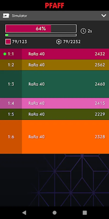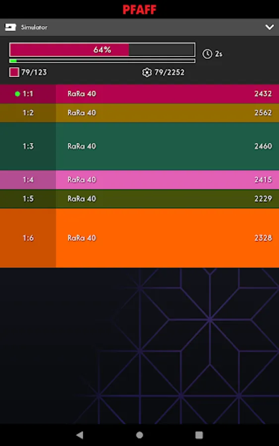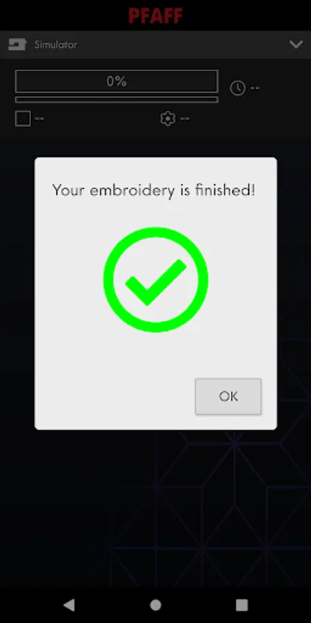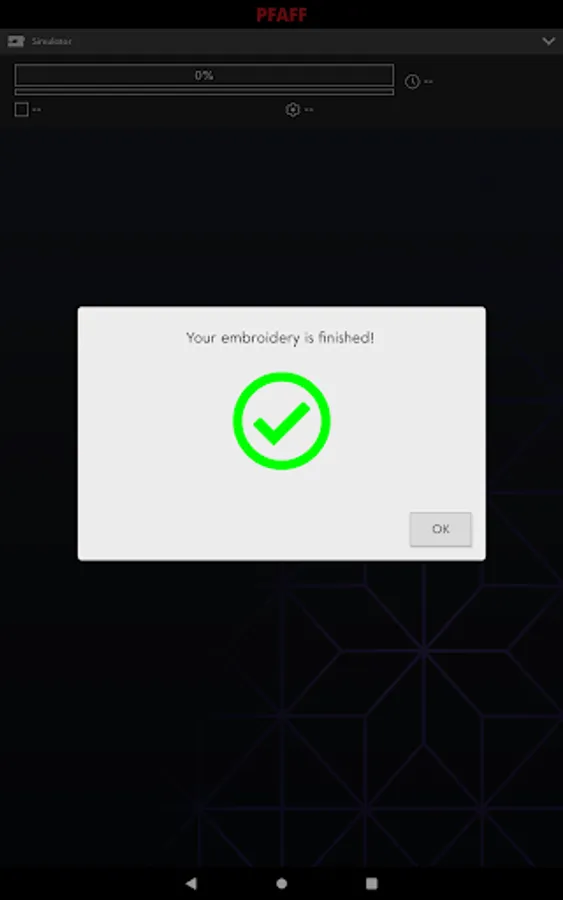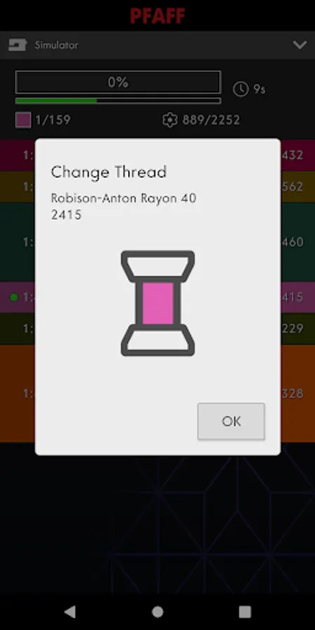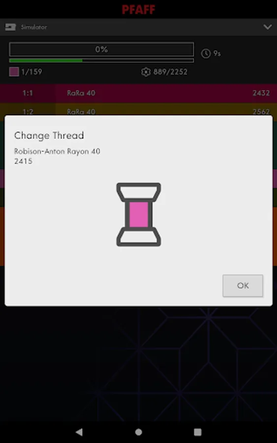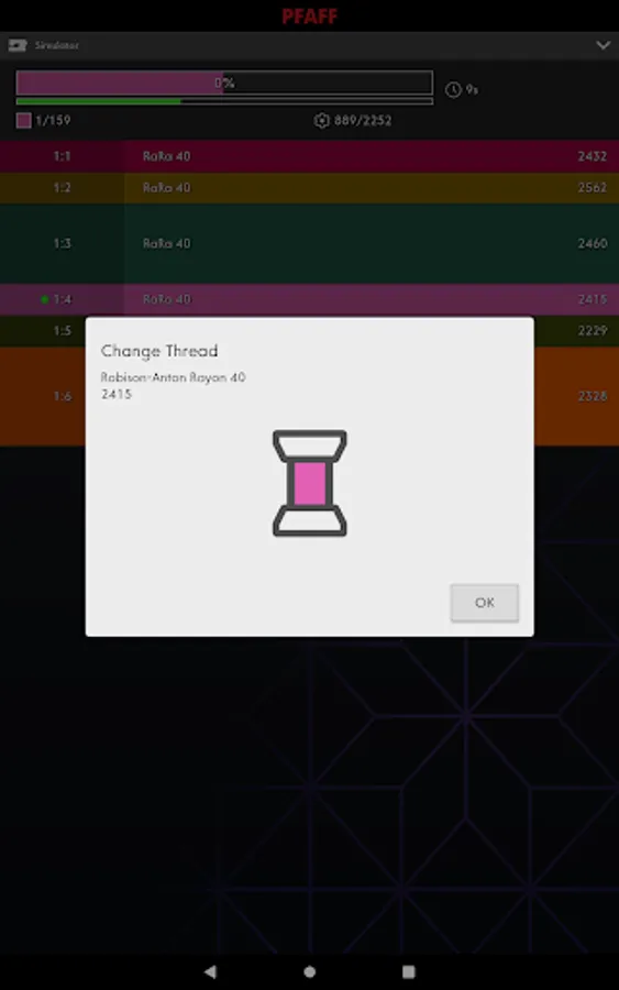 The app displays information about current stitch and time to next stop. It will notify you when the machine has stopped, for example when you need to change threads or when the amount of bobbin thread is low.
