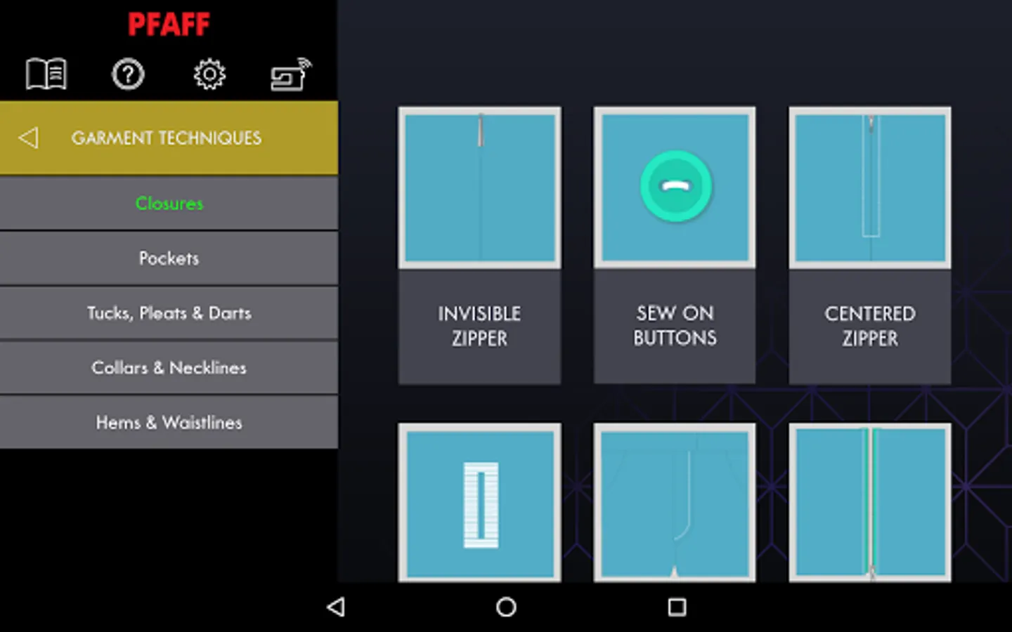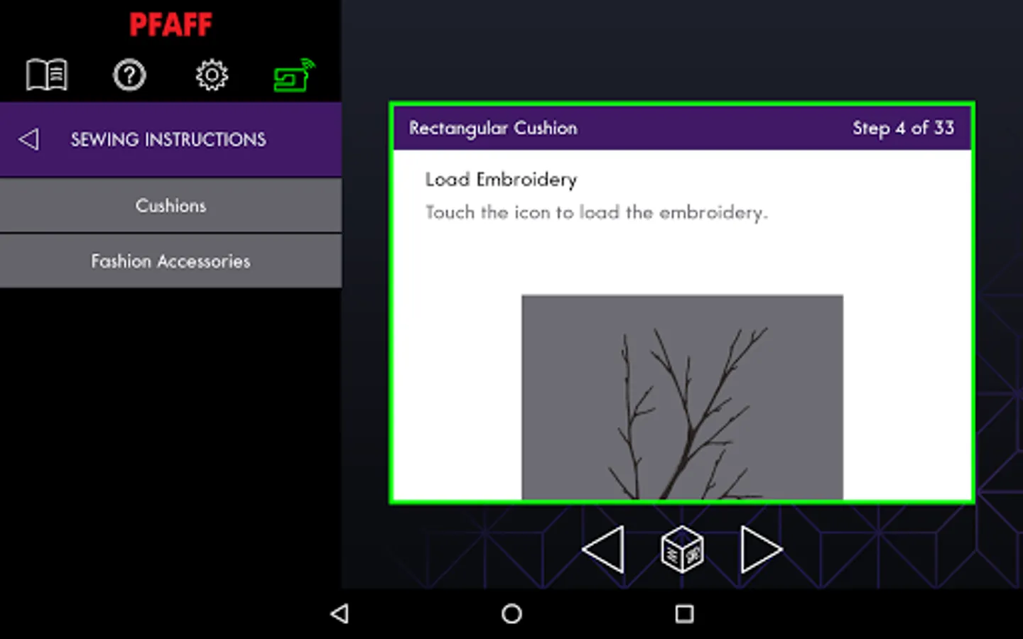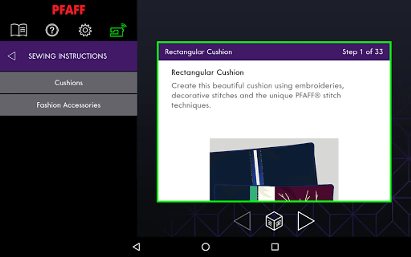 The PFAFF® CreatorCue app allows you to view step-by-step sewing instructions and tutorials from the comfort of your sofa, cutting table, ironing board, or even while shopping! Start by browsing through the sewing instructions and tutorials featured within the app or on your mySewnet™-enabled sewing machine. Once you've selected something new to create, simply follow the step-by-step sewing instructions provided within the CreatorCue app and in your sewing machine. Every step syncs automatically between the app and your machine via your mySewnet™ account allowing you to follow instructions without missing a beat.