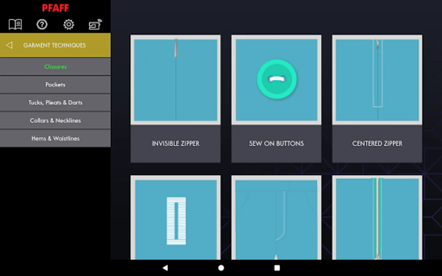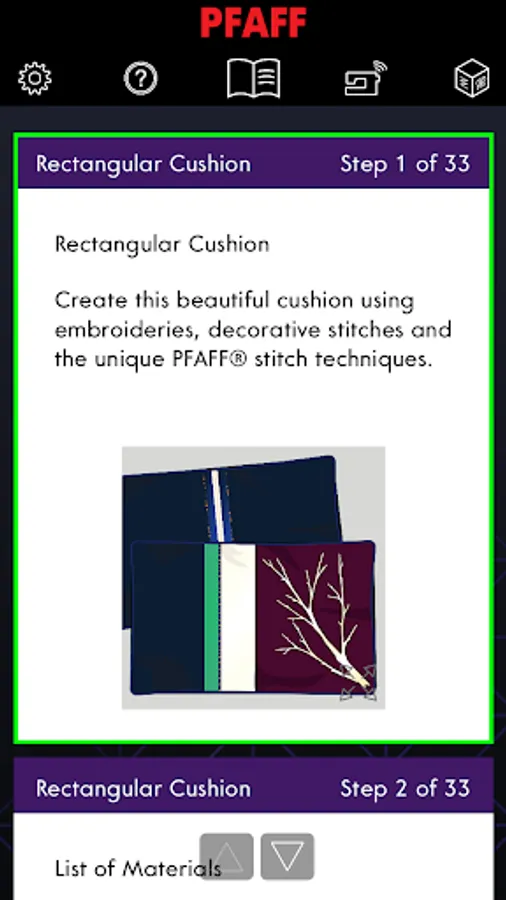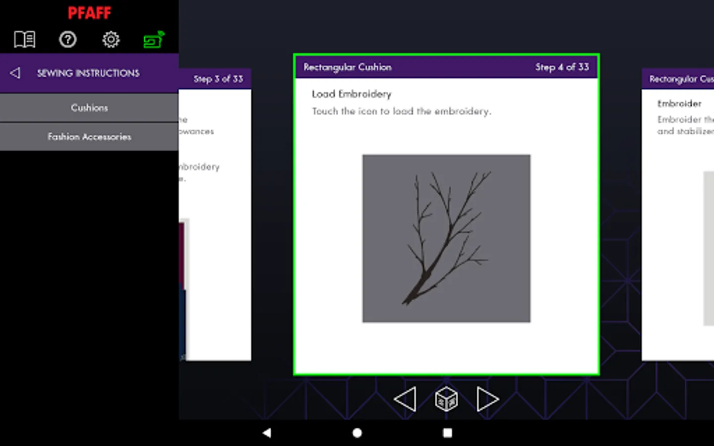 The PFAFF® CreatorCue app allows you to view step-by-step sewing instructions and tutorials from the comfort of your sofa, cutting table, ironing board, or even while shopping! Start by browsing through the sewing instructions and tutorials featured within the app or on your mySewnet™-enabled sewing machine. Once you've selected something new to create, simply follow the step-by-step sewing instructions provided within the CreatorCue app and in your sewing machine. Every step syncs automatically between the app and your machine via your mySewnet™ account allowing you to follow instructions without missing a beat.