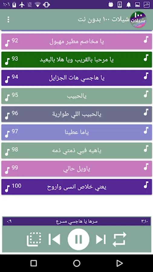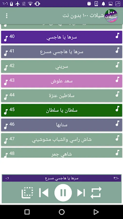 The application of 100 sheila .. contains 100 sheila without the Internet, which is the most listened to.