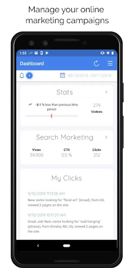 My Site Analytics provides an easy and effective way to manage your online marketing and sales directly from your smartphone. You can keep track of your online marketing campaigns, view your website stats, and monitor your spend in just 5 minutes. My Site Analytics notifies you of new leads and lets you get back to them while on the go, so you never miss a chance of closing a sale!