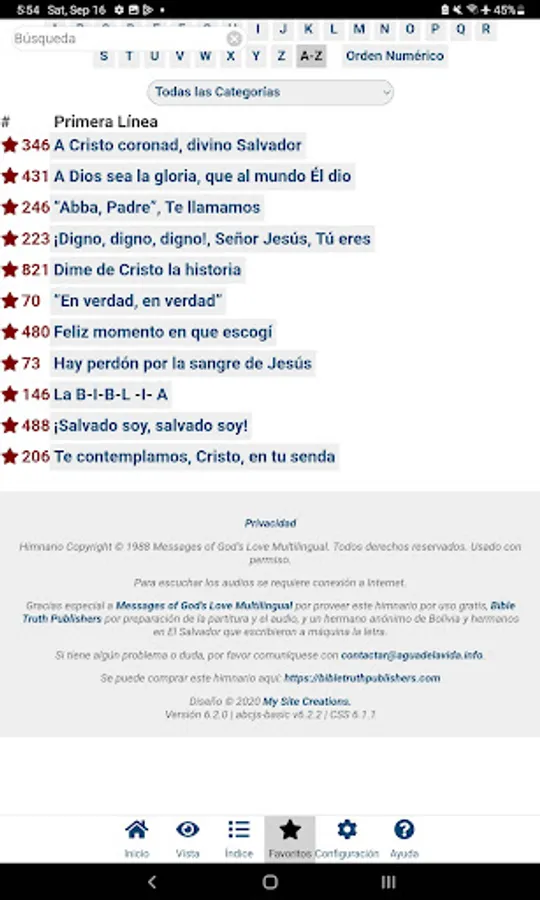 6a edición del himnario (1988) con partitura y música, sin 37 himnos que no tenemos los derechos para publicar. Tiene aproximadamente 719 himnos/coros y 500 melodías.