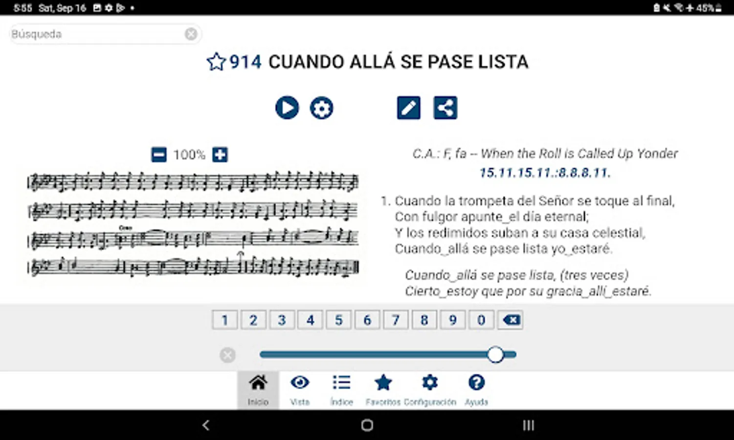 Se necesita conexión al Internet para oír la música y ver la partitura.