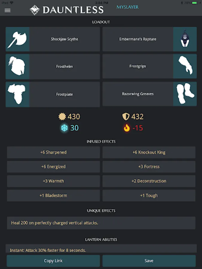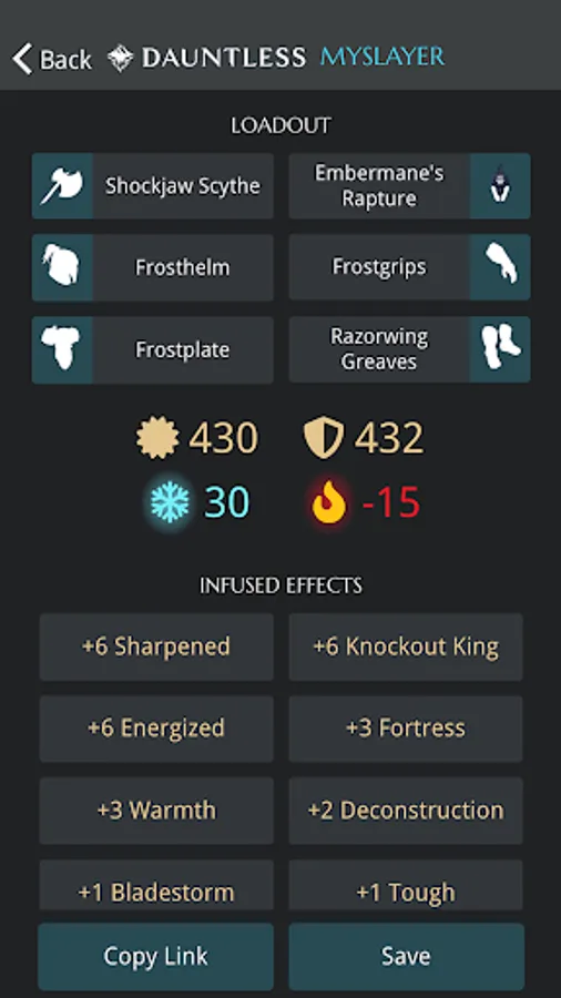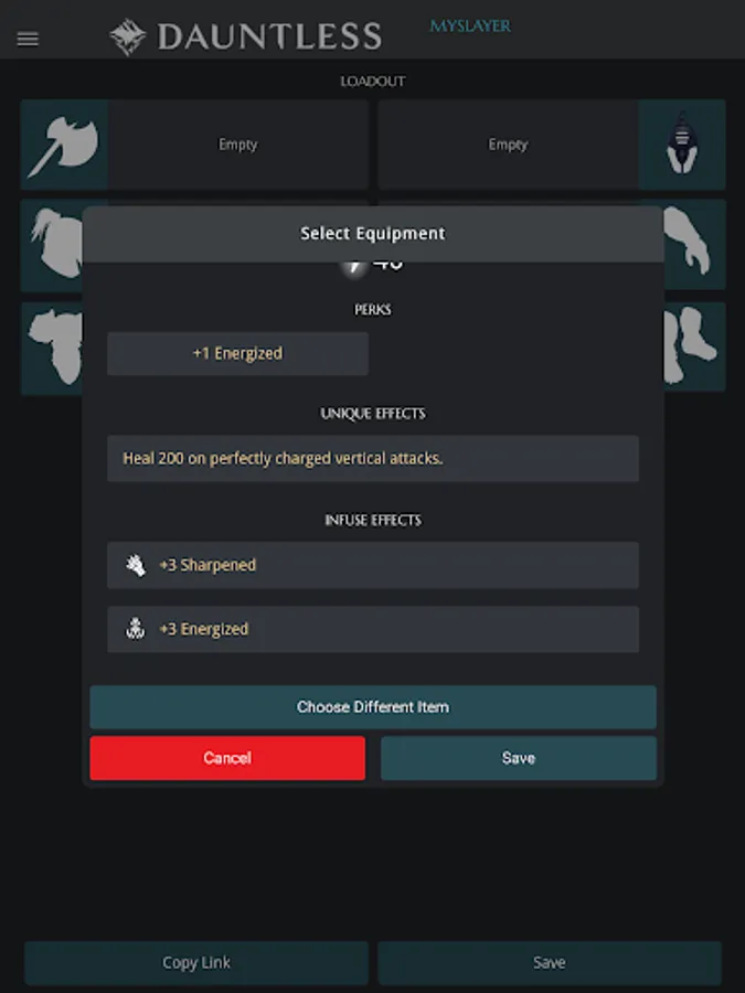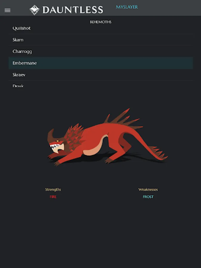 MySlayer is an unofficial Dauntless companion app. Use it as a quick reference to see Behemoth weakness, or calculate new loadouts and share them with other slayers.