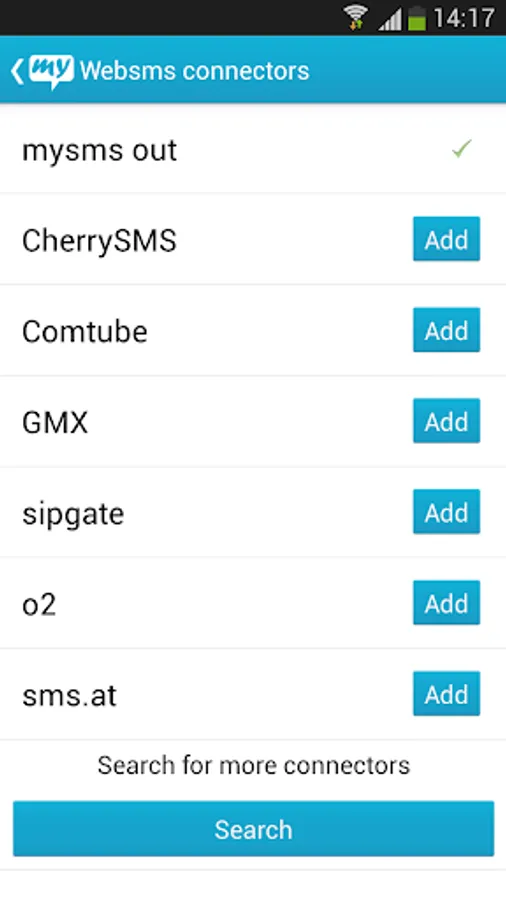 2) Start mysms, go to settings and configure mysms out under "Websms connectors"
