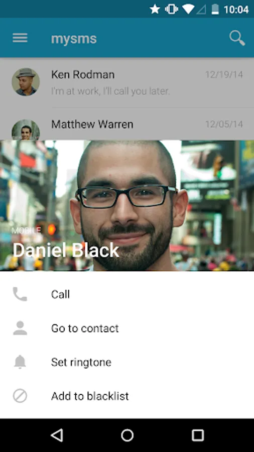 ● Sync your contacts and messages from your phone to the mysms cloud to text from any device