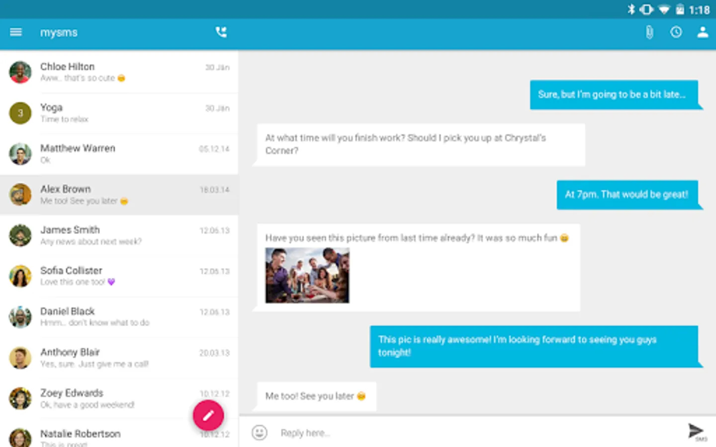 *** PLEASE NOTE: This app is not self-contained.To be able to use mysms tablet, you have to have mysms installed on your Android smartphone. ***