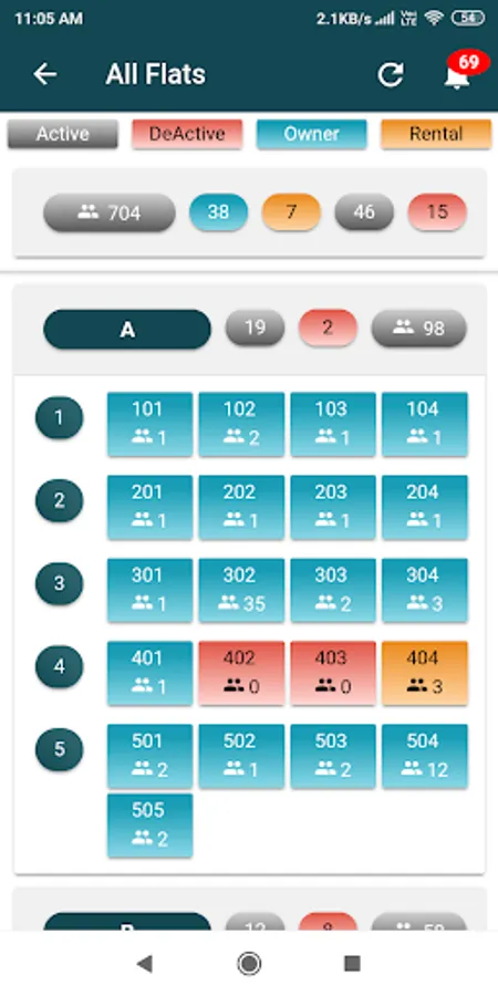 2) Get the details of every building/ flat whether the flat is rental/owner