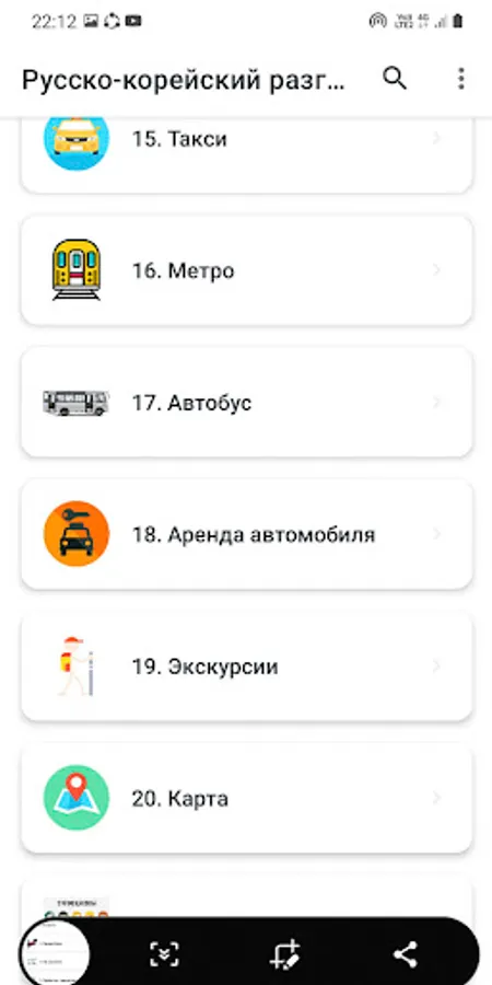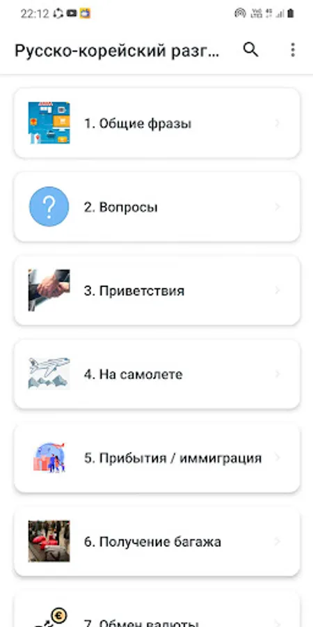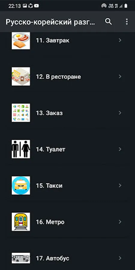 Базовый набор слов включает фразы вежливого приветствия, обращения к собеседнику, благодарности, основные вопросы для навигации по городу. Тематические блоки разговорника посвящены поездкам, покупкам, общению с официантами в ресторане.