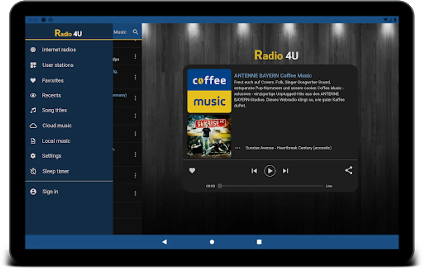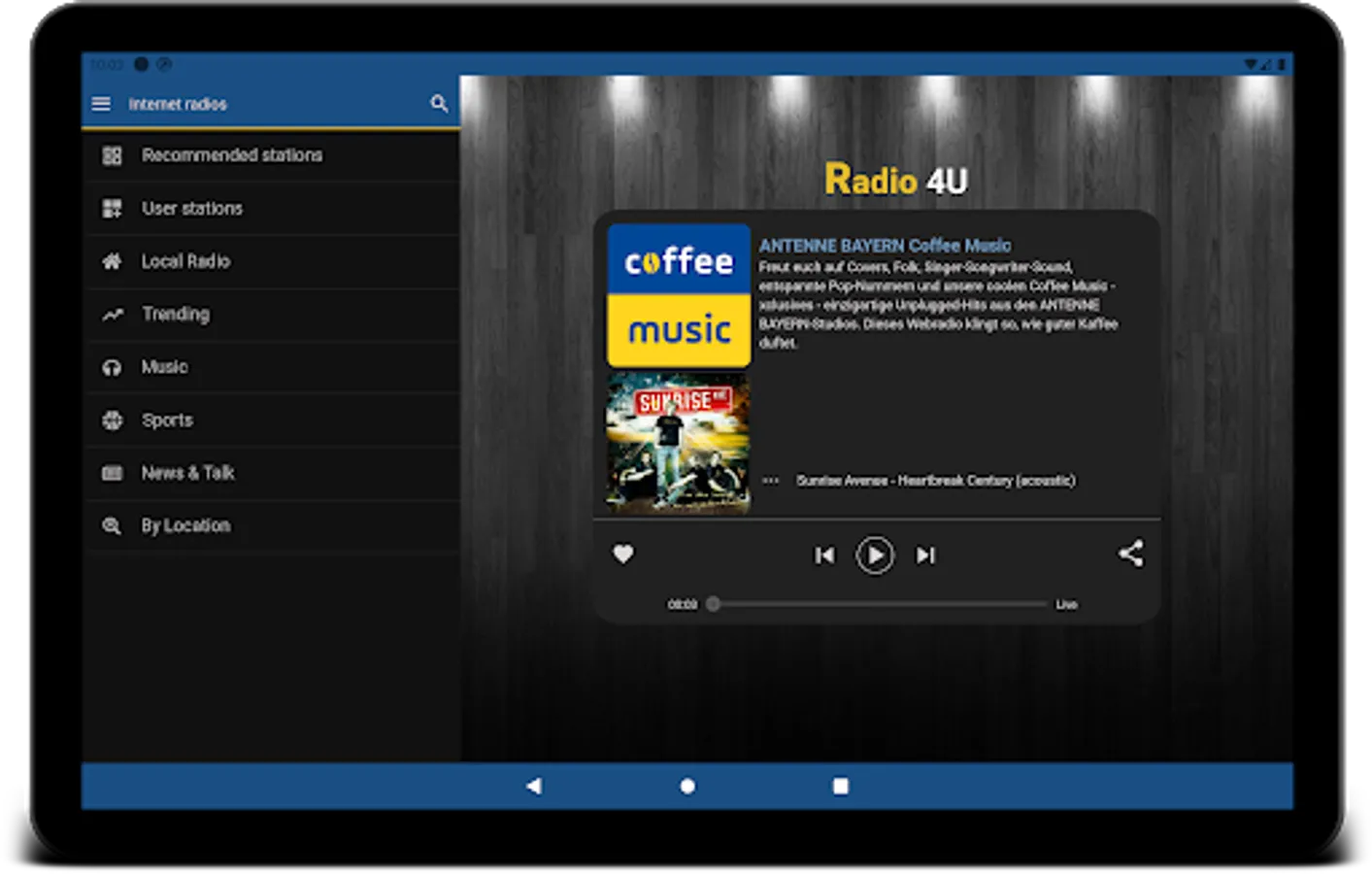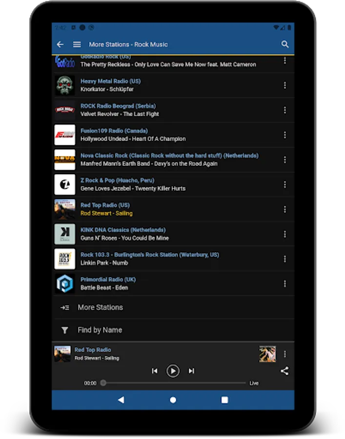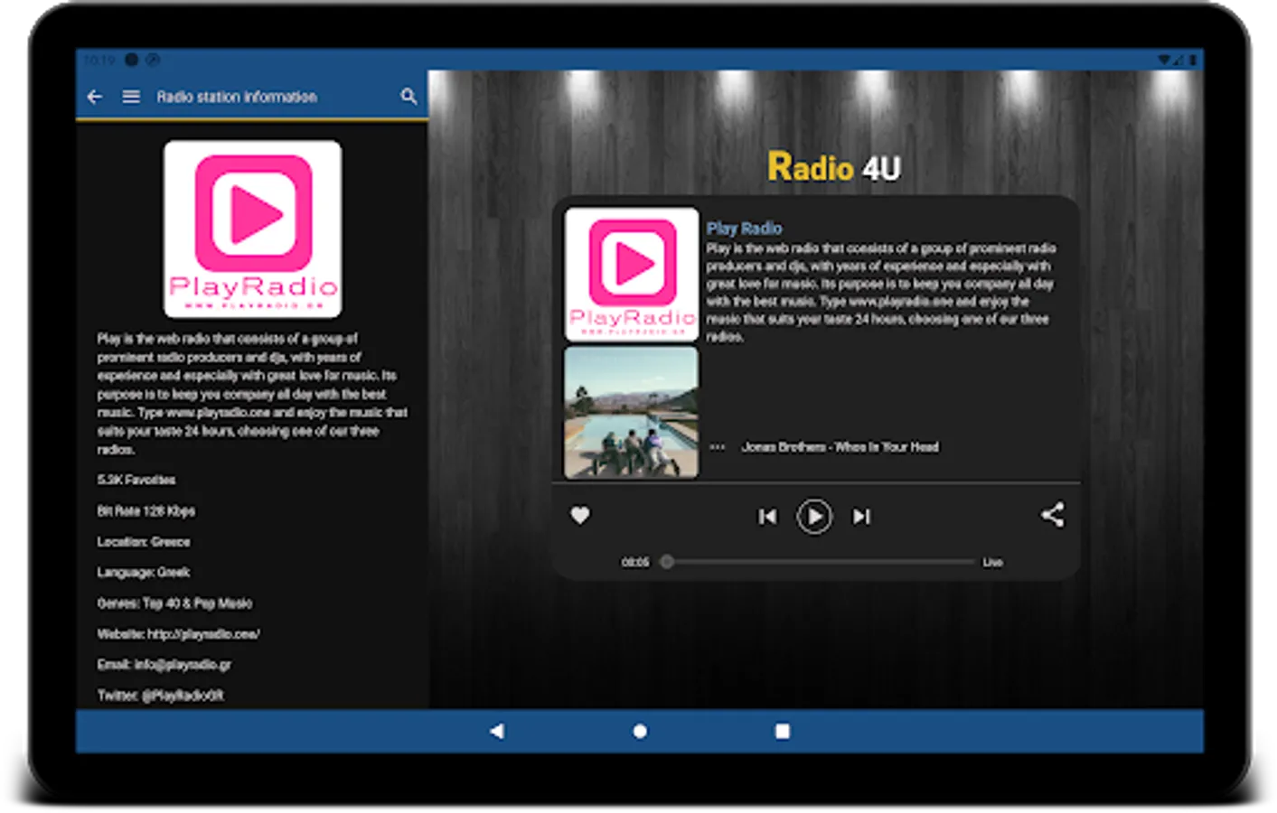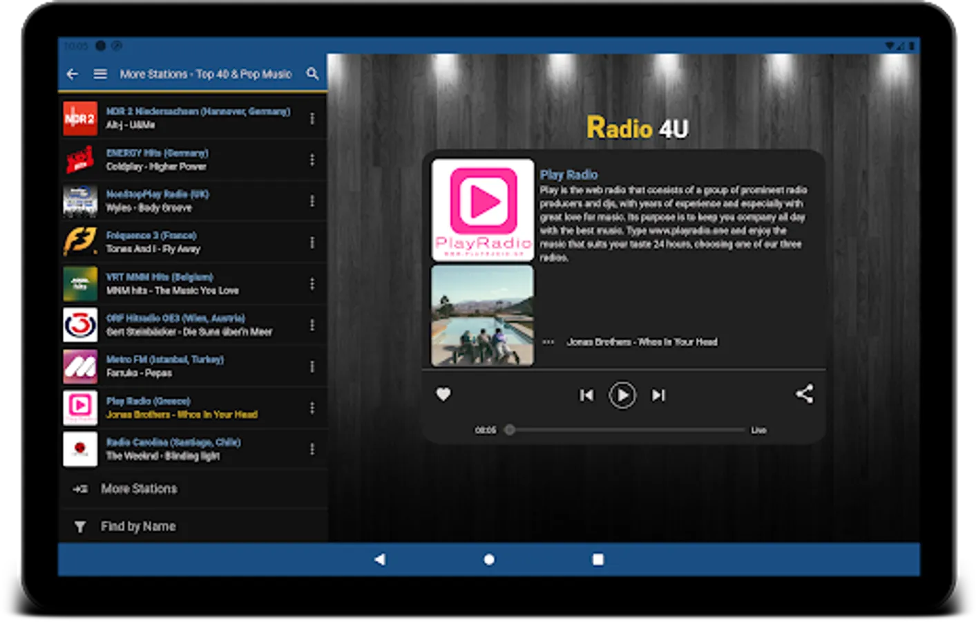 Radio 4U, is a free application that allows you to choose from thousands of internet radio stations around the world.