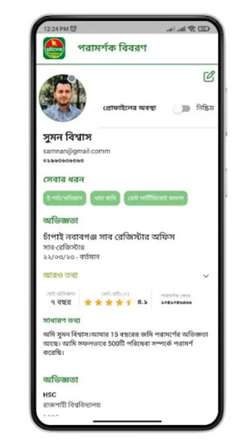 In addition, you will get the names, titles and contact details of all the departments, officers and employees related to the land service. This app is a milestone in resolving all your land service issues which will enrich the concept of land service and motivate them to get the service.