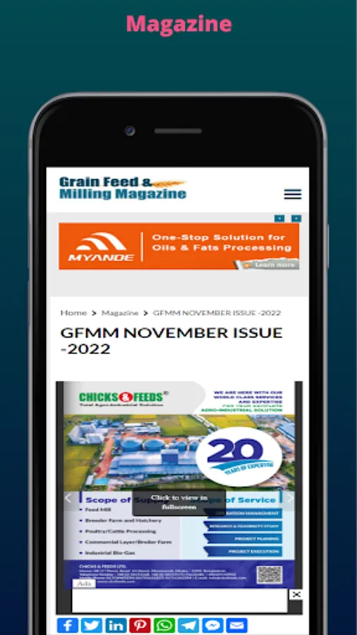 The monthly 'Grain Feed and Milling Magazine' is published from Asia's agriculture based Bangladesh in front of the theme, 'Know the Grain Feed and Milling World'. This Well Circulated Magazine (Print, Digital & Online) is publishing including latest news of grain feed and milling sector all over the world, special focusing on Asian grain feed and milling market and playing the role of Asia's Grain Feed and Milling Market’s like one of the spokesmen.