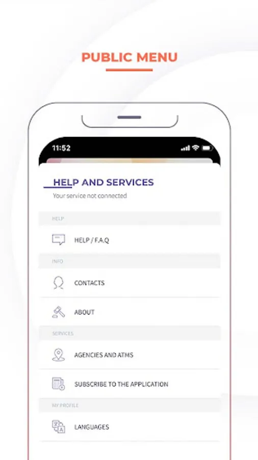 - A public space: I can access it without authentication and use a set of convenient services (geolocation of an ATM, viewing useful contacts…)