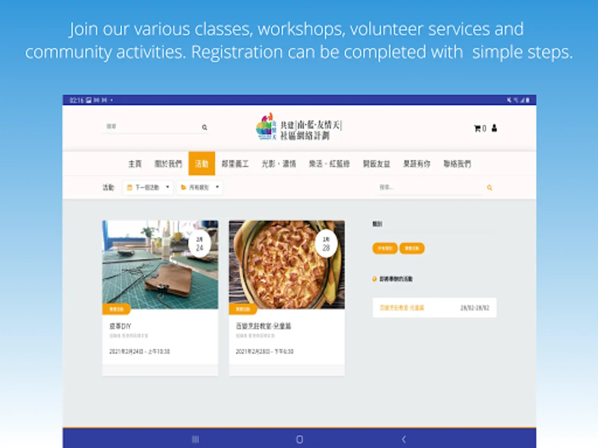Mutual Help Community is located at No. 14, G/F, Block C1, Lei Chak House, Ap Lei Chau Estate. It is sponsored by the Hong Kong Southern District Women’s Association and funded by Bank of China Hong Kong. Since the service commenced in January 2021, we aim to build a friendly and supportive Southern District providing various classes and workshops, as well as volunteer services and community activities.