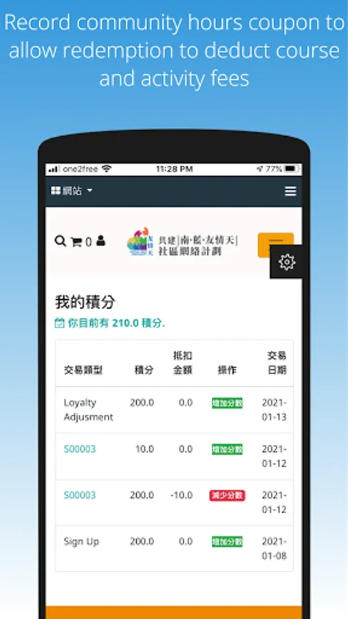 -Record community hours coupon to allow redemption to deduct course and activity fees