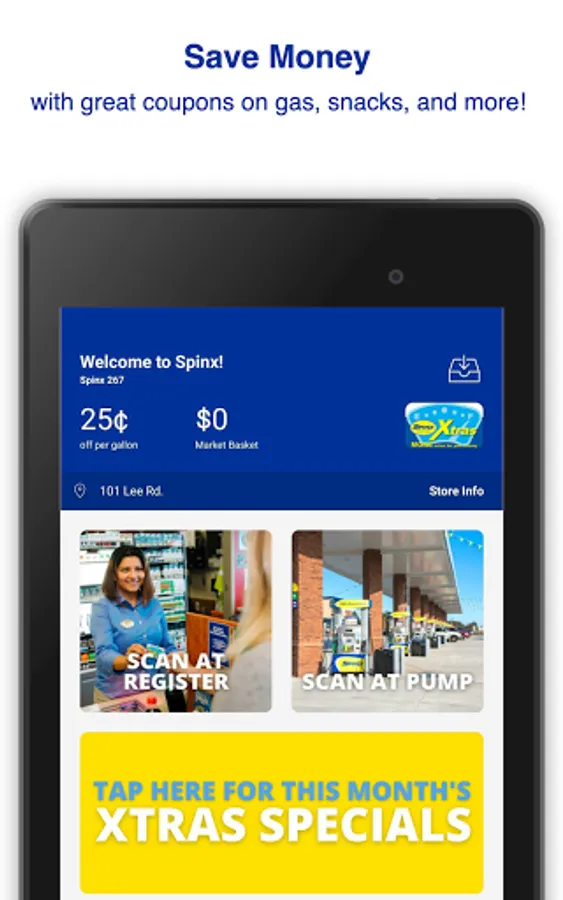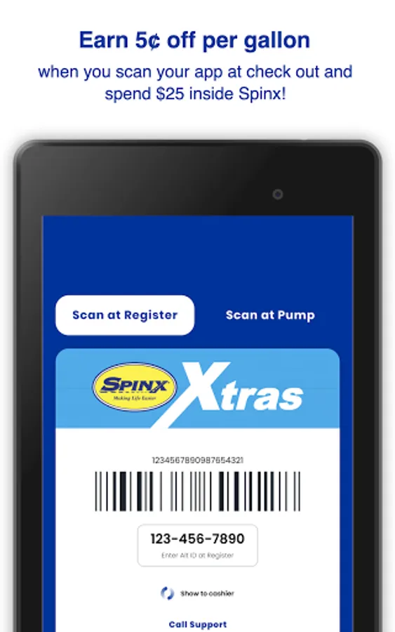 The Spinx Mobile app is convenient and easy. Create an account using your Spinx Xtras card to unlock exclusive offers and savings right at your fingertips. Use the app to earn and redeem rewards, view your rewards balance and get exclusive offers picked just for you! Also, you can easily pay with the app inside the store or at the pump.